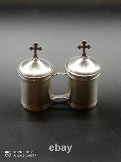 In good condition with some small dents and a hinge pin that does not appear to be original (see photos).