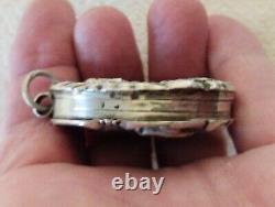 Superbe boite reliquaire pendentif en argent massif français. Contenant les reliques de 4 saints écrites en latin.