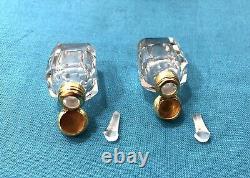 3,6 cm de hauteur pour les flacons. 8,5 cm de longueur et 6 cm de diamètre pour la coque. Très bon état pour son âge. Minimes usure de la dorure des bouchons.
