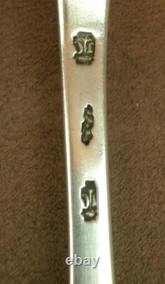 BELLE CUILLÈRE ANCIENNE EN ARGENT MASSIF FERMIERS GÉNÉRAUX XVIIIe. On notera des usures d'usage à l'extrémité du cuilleron.