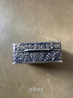 Petite Boîte Ancienne En Argent Massif 800 Émaillée Thème Trois Femmes En Nature